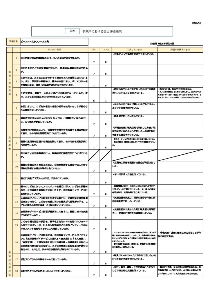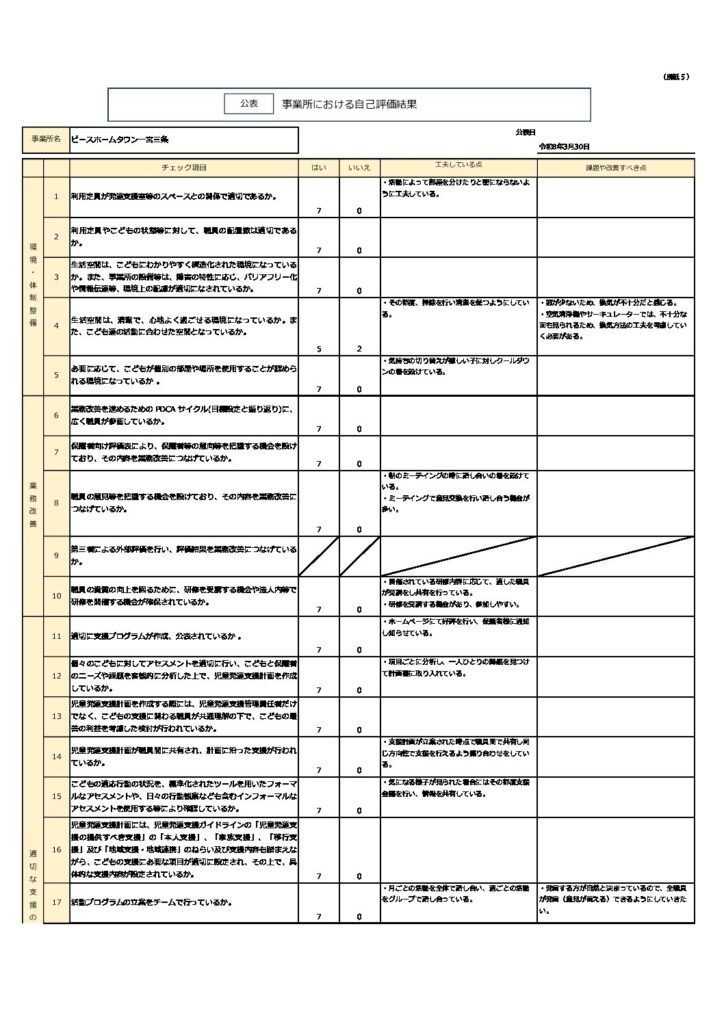 事業所における自己評価表